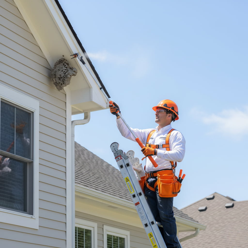 Don’t risk getting stung trying to handle it yourself. Our team removes wasp and yellow jacket nests safely and quickly. From soffits to sheds, we make sure they’re gone. And, we keep them from rebuilding in the same spot.